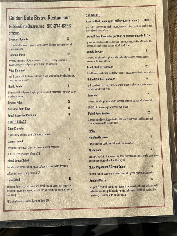 Welcome to Golden Gate Bistro, a delightful dining destination nestled in Richmond, CA, where culinary innovation meets comfort. This dynamic eatery specializes in a diverse array of flavorful pizzas, American breakfast, and brunch favorites, catering to all dietary preferences with ample vegan and vegetarian options.